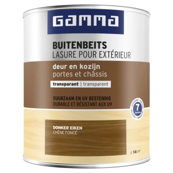 7 jaar van deuren, kozijnen, gevelbetimmering en daklijsten. GAMMA buitenbeits transparant dringt goed in het hout, is vochtregulerend en waterafstotend. Lang glansbehoud dankzij het UV filter. Na het behandelen blijft de natuurlijke structuur en nerf van het hout goed zichtbaar. Stofdroog na ± 4 uur en overschilderbaar na ± 18