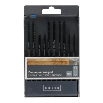 De Gamma decoupeerzaagset met T aansluiting is uitermate geschikt voor het (invallend) zagen van hout (grof en fijn), metaal en laminaat. De set bestaat uit een tiental decoupeerzaagbladen variërend in toepassing en aantal zaagtanden.