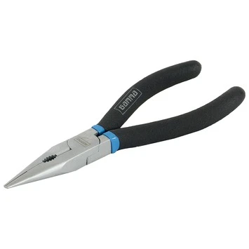 Deze slanke GAMMA-langbektang van 160mm zorgt ervoor dat u ook op ogenschijnlijk onbereikbare plaatsen voorwerpen kunt vastklemmen. De langbektang die slank en recht is heeft namelijk een smalle en lange puntbek. Met deze rechte langbektang knipt u middelharde materialen met een maximale dikte van 1,6mm. De 160mm langbektang heeft ergonomische handvatten die u een goede houvast bieden tijdens het klem- en knipwerk. Dankzij de nikkel-microfinish heeft de slanke langbektang een extra lange levensduur en is de rechte langbektang ook eenvoudig te onderhouden. Het klemmen van voorwerpen op moeilijk bereikbare plekken is eenvoudig met deze slanke, rechte langbektang van GAMMA met een afmeting van 160mm.